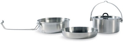 Набор посуду від німецького виробника Tatonka. Каструля, сковорідка і миска складаються один в одного для економії місця.